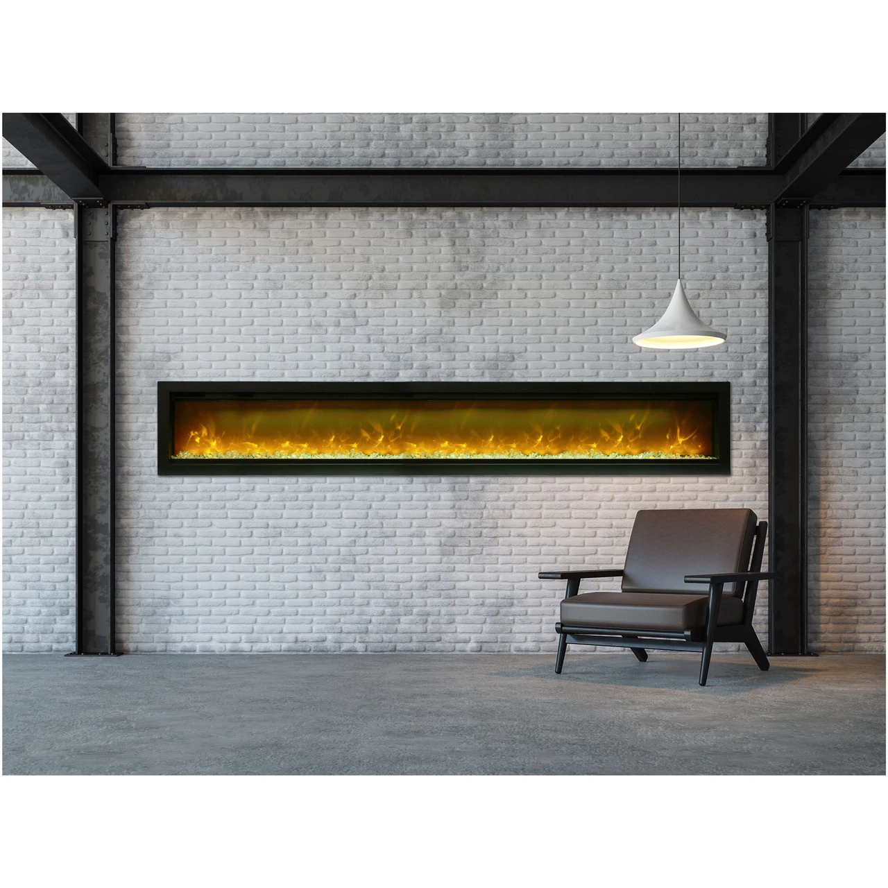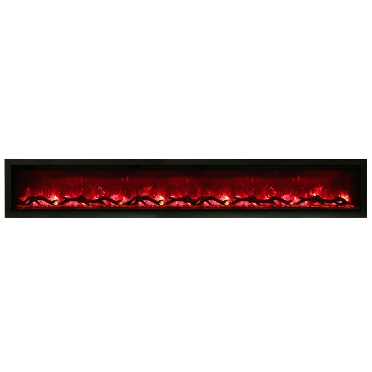 SYM-100 Electric Fireplace – 100″ Clean Face | Built-in with Logs and Glass | Black Steel Surround
