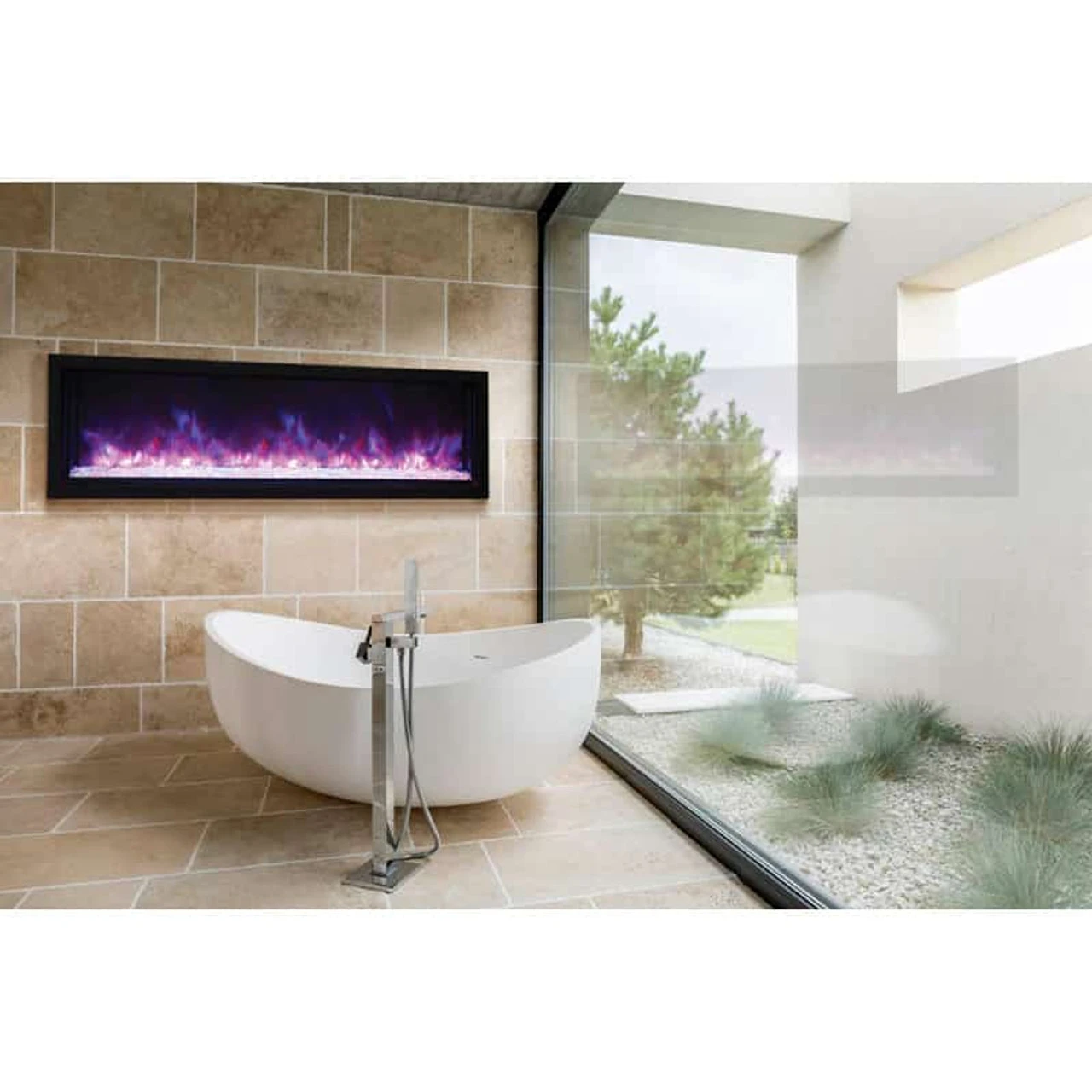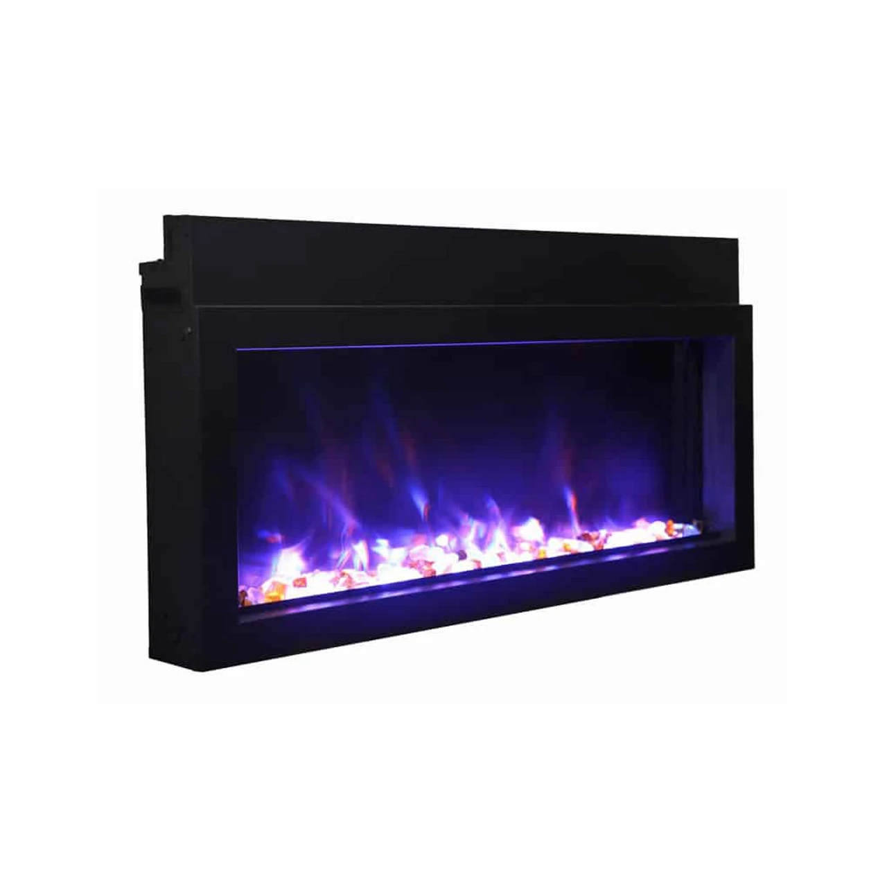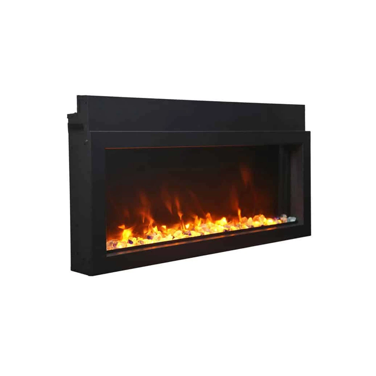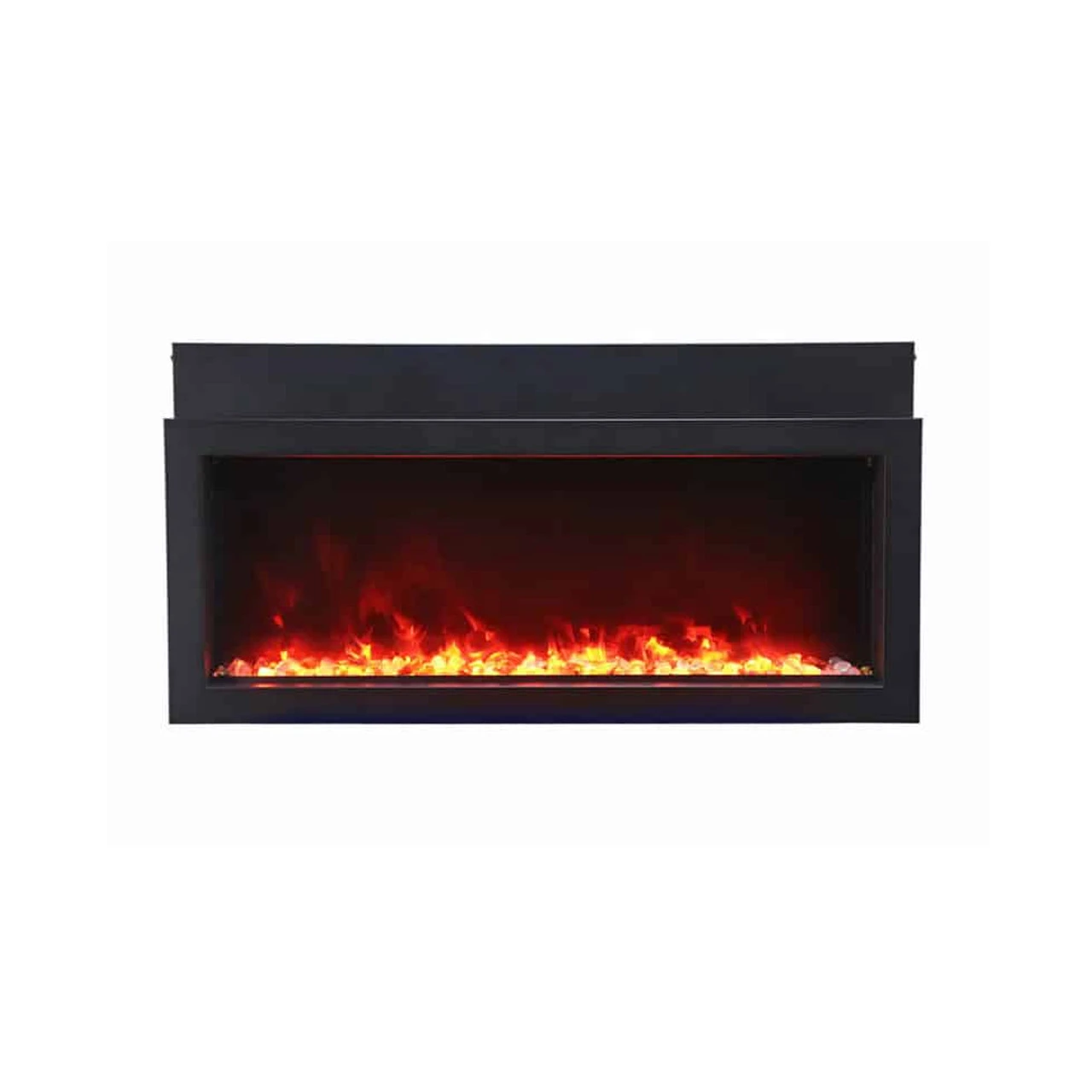 BI-60-XTRASLIM – 60″ Extra Slim Indoor or Outdoor Built-In only Electric Fireplace with Black Steel Surround – by Amantii
