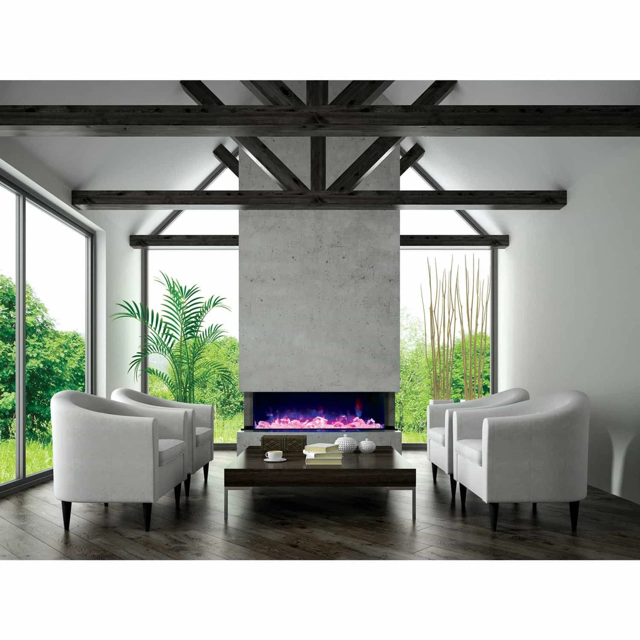 The 72-TRU-VIEW-XL 3 sided electric fireplace is truly innovative! The gorgeous flame presentation and unique media options can now be viewed from almost any angle through 3 sides of glass viewing area.