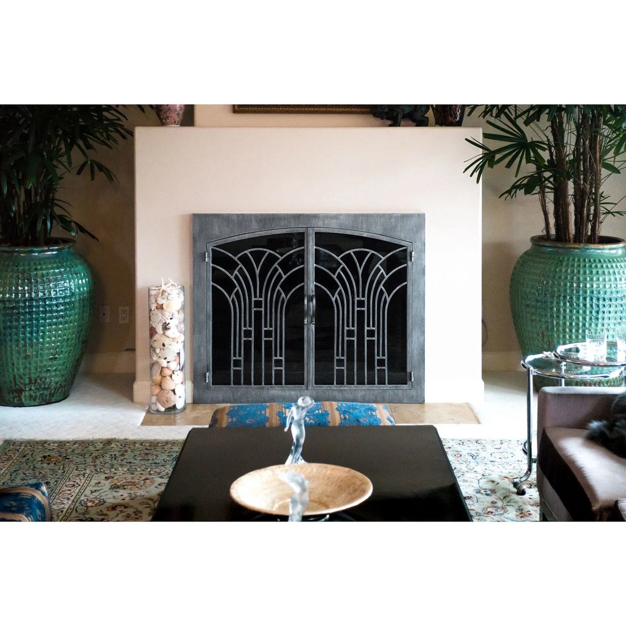 Industrial strength wrought iron doors are extremely durable and can withstand extremely high temperatures making this door a perfect addition to your home and hearth. Wrought iron is also highly malleable which means we can easily transform and tweak any door design to your desired taste. Not only will you receive a long lasting fireplace door but you will receive a personalized door crafted just for you. Finish your fireplace doors with either a mesh screen or premium glass.