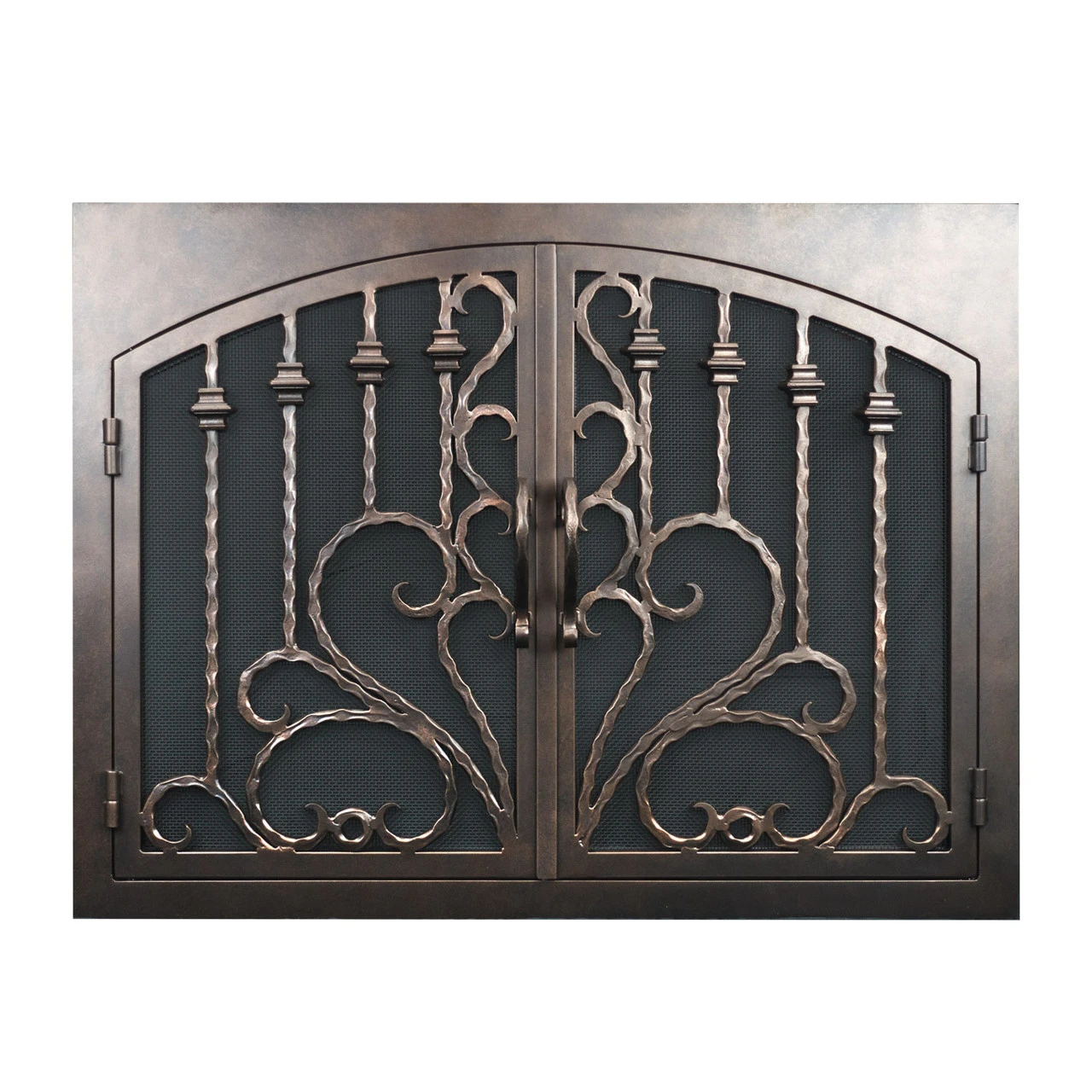 Each door is made just for you and can be made exactly to your liking! One of our most traditional designs, the Arcadia boasts boldness with its straight lines and prominent curves. Perfect design balance mixed with ageless wrought iron material has made the Arcadia one of our most popular doors by demand. Not only is this door perfect for traditional and Mediterranean style homes, it is also a great option for all outdoor fireplaces. Industrial strength wrought iron doors are extremely durable and can withstand extremely high temperatures making this door a perfect addition to your home and hearth. Wrought iron is also highly malleable which means we can easily transform and tweak any door design to your desired taste. Not only will you receive a long lasting fireplace door but you will receive a personalized door crafted just for you. Finish your fireplace doors with either a mesh screen or premium glass.