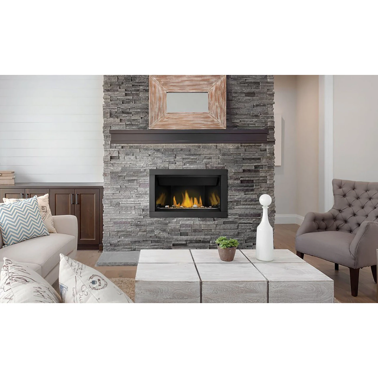 Make the Napoleon Ascent™ linear gas fireplace the ideal finishing touch for your home. Customize the look by adding optional media enhancement kits like the natural and nautical feeling Beach Fire or Shore Fire kits. The earthy Mineral Rock kit is another colorful option and can be mixed and matched with the other kits to create a truly unique look. The eFIRE app allows you to control the fireplace from your favorite mobile device. The Ascent™ Linear adds sparkling luxury to any room with the topaz CRYSTALINE™ ember bed, wherever it’s installed.