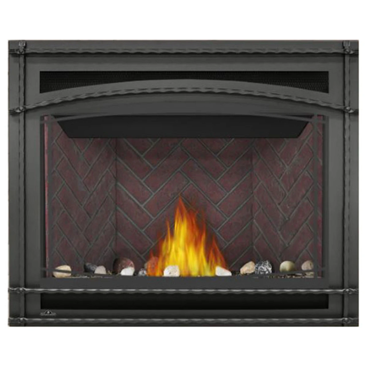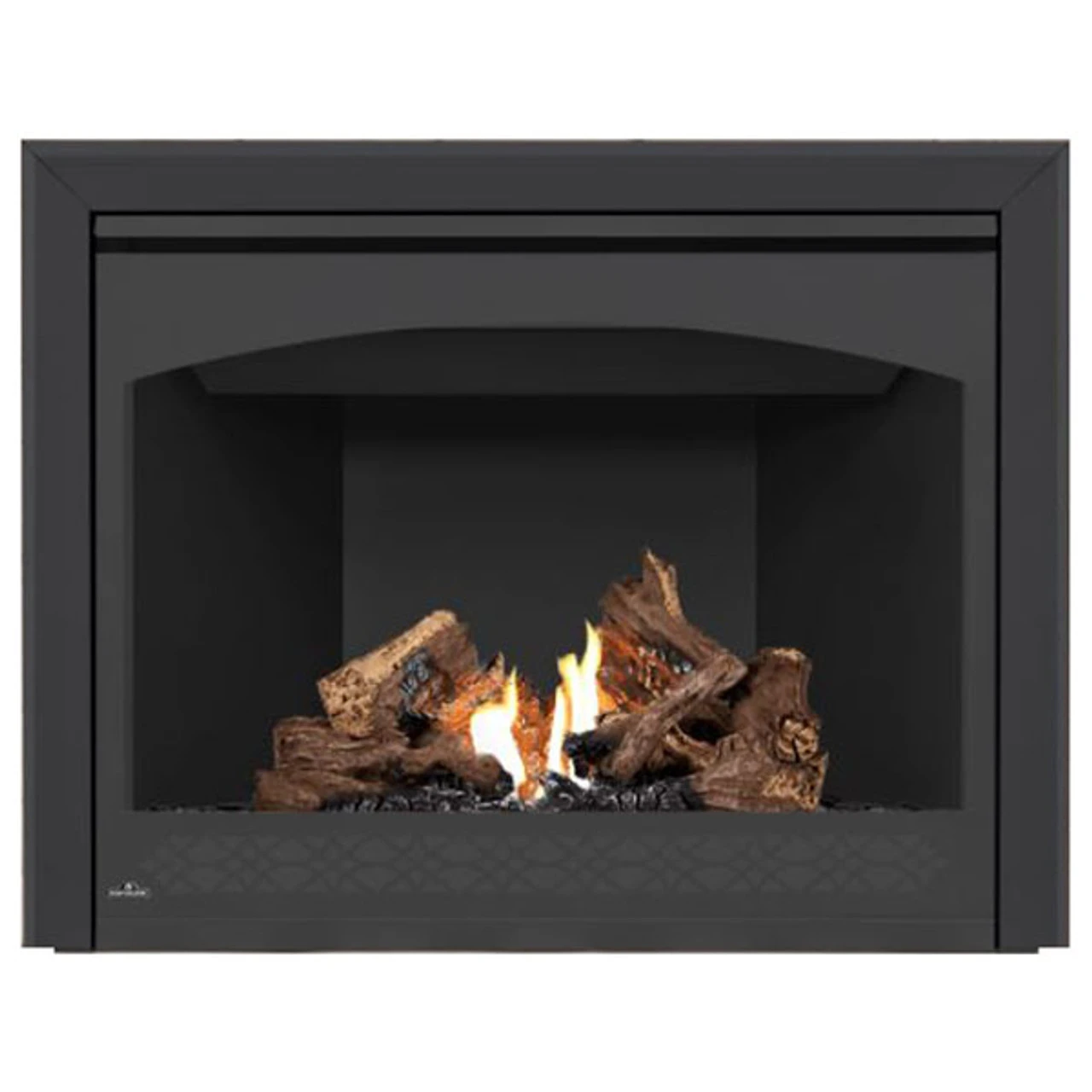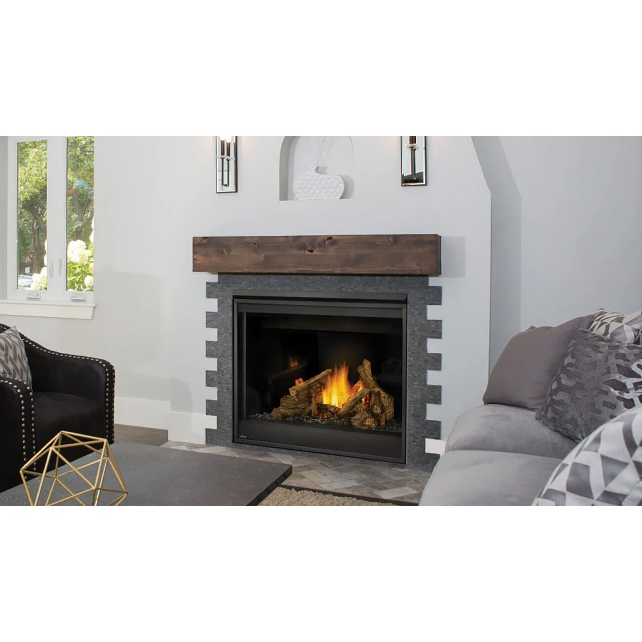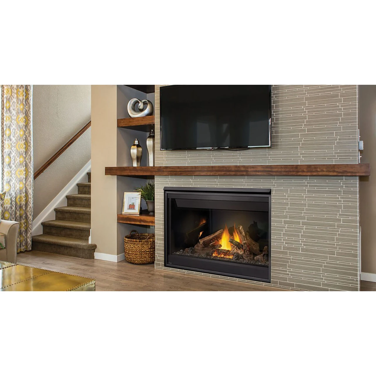 The Ascent™ 42 fireplace features a premium Split Oak Log set with a traditional look and feel. It is a clean-faced fireplace that maximizes the viewing area so the realistic flames can be enjoyed to their fullest. The dual flame pan burner technology creates a double layer of flames for even more depth. No power? No problem! The electronic or millivolt ignition system ensures that the fireplace functions, even when the power goes out, keeping your family safe and warm. With the approved safety barrier, the Ascent™ meets tomorrow’s safety standards today. Customize the look of this gorgeous fireplace with a selection of fronts, backer panels, trims, and optional media kits like the beach fire and mineral rock kit to lend a more unique look. This unit is ideal for builders and homeowners alike, featuring a shallow depth, which allows for versatile installations where space is at a premium. This means any room can have a beautiful gas fireplace.