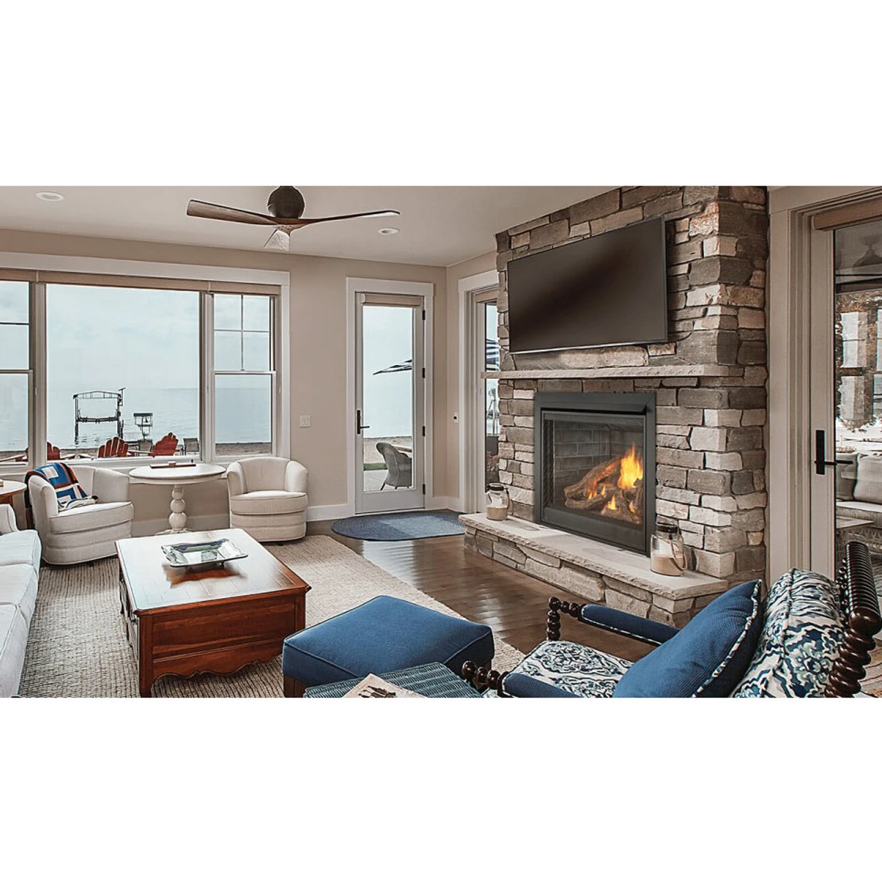 The Ascent™ Deep X 42 Gas Fireplace is a traditionally styled gas fireplace that features a hand made premium split oak log set. This clean-faced fireplace has an extra-deep 22-inch firebox to ensure that every inch of the gorgeous fire can be enjoyed. Fully customize this beautiful fireplace with a multitude of optional fronts, backs, trim kits, and even additional logs and rocks. The optional heat management system reduces clearance to combustibles on installation for greater interior design flexibility. Meaning that you can place your favorite electronics and artwork closer to the fireplace without fear of heat damage. The Ascent™ Deep X 42 Gas Fireplace ensures your favorite space is more comfortable for years to come.