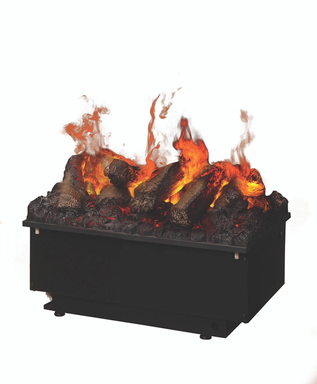 The Opti-myst flame effect uses revolutionary ultrasonic technology to produce a fine mist that creates the lifelike illusion of flames and smoke.