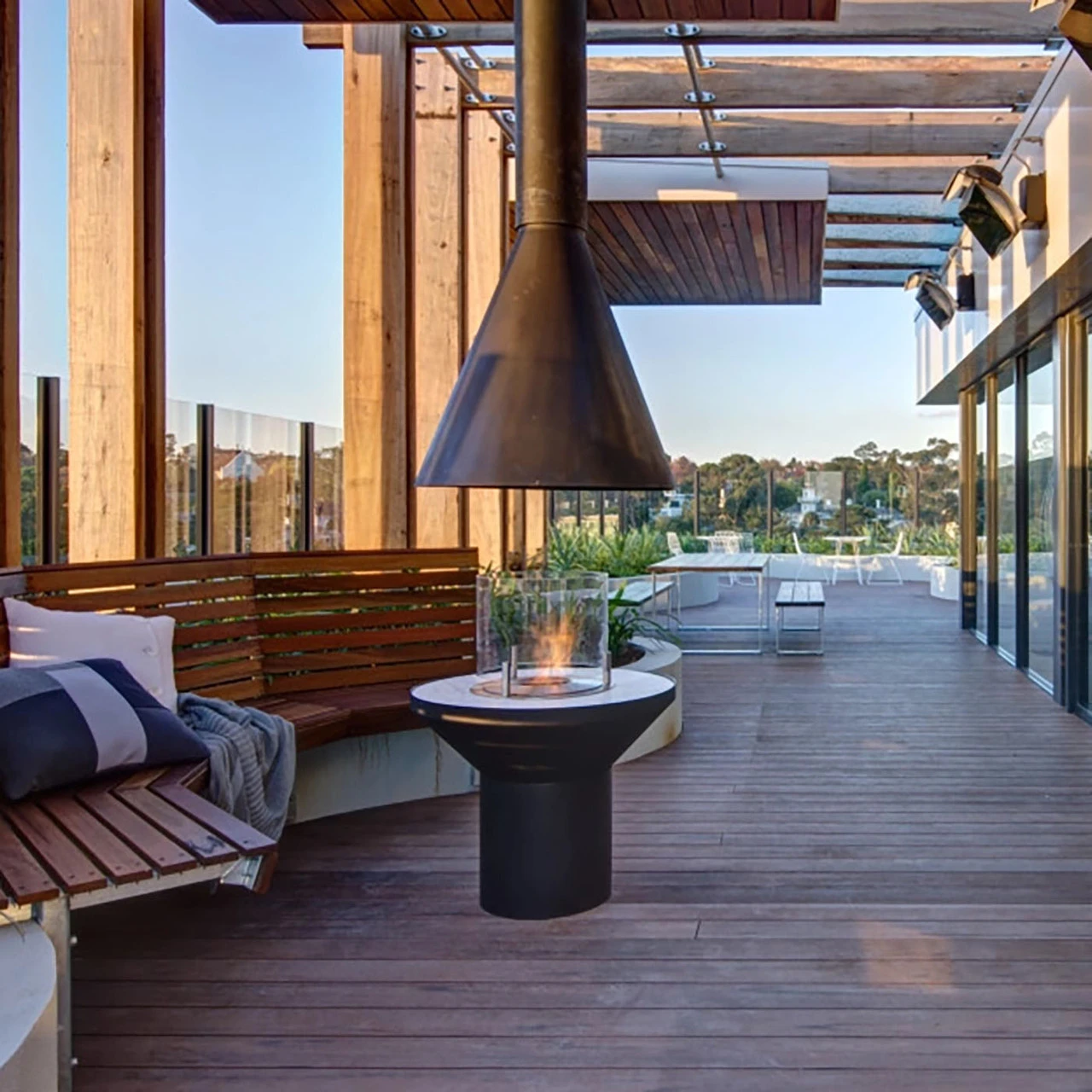 There’s no need for a chimney to vent harmful gases, as burning liquid e-NRG bioethanol does not produce any smoke. No utility connections required!