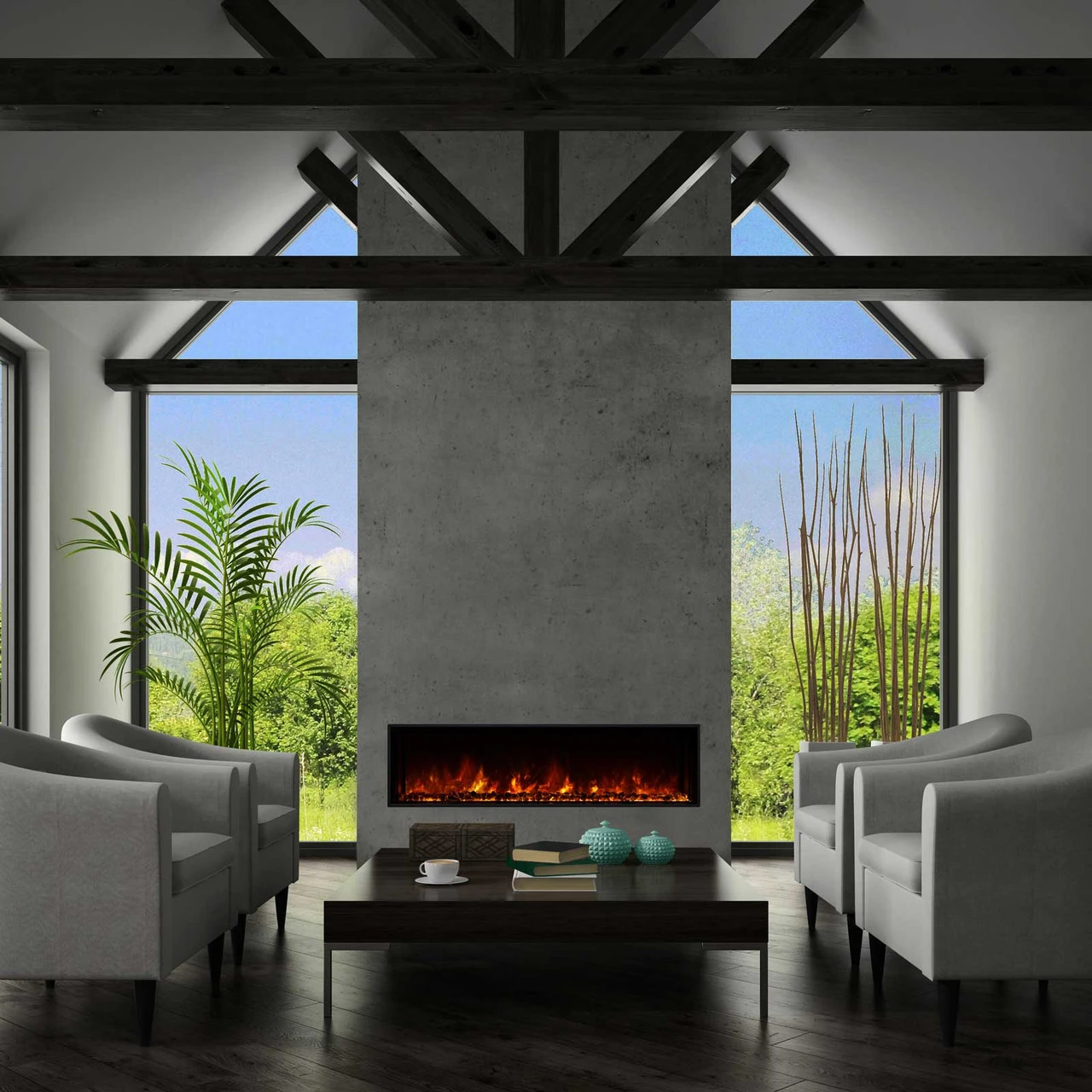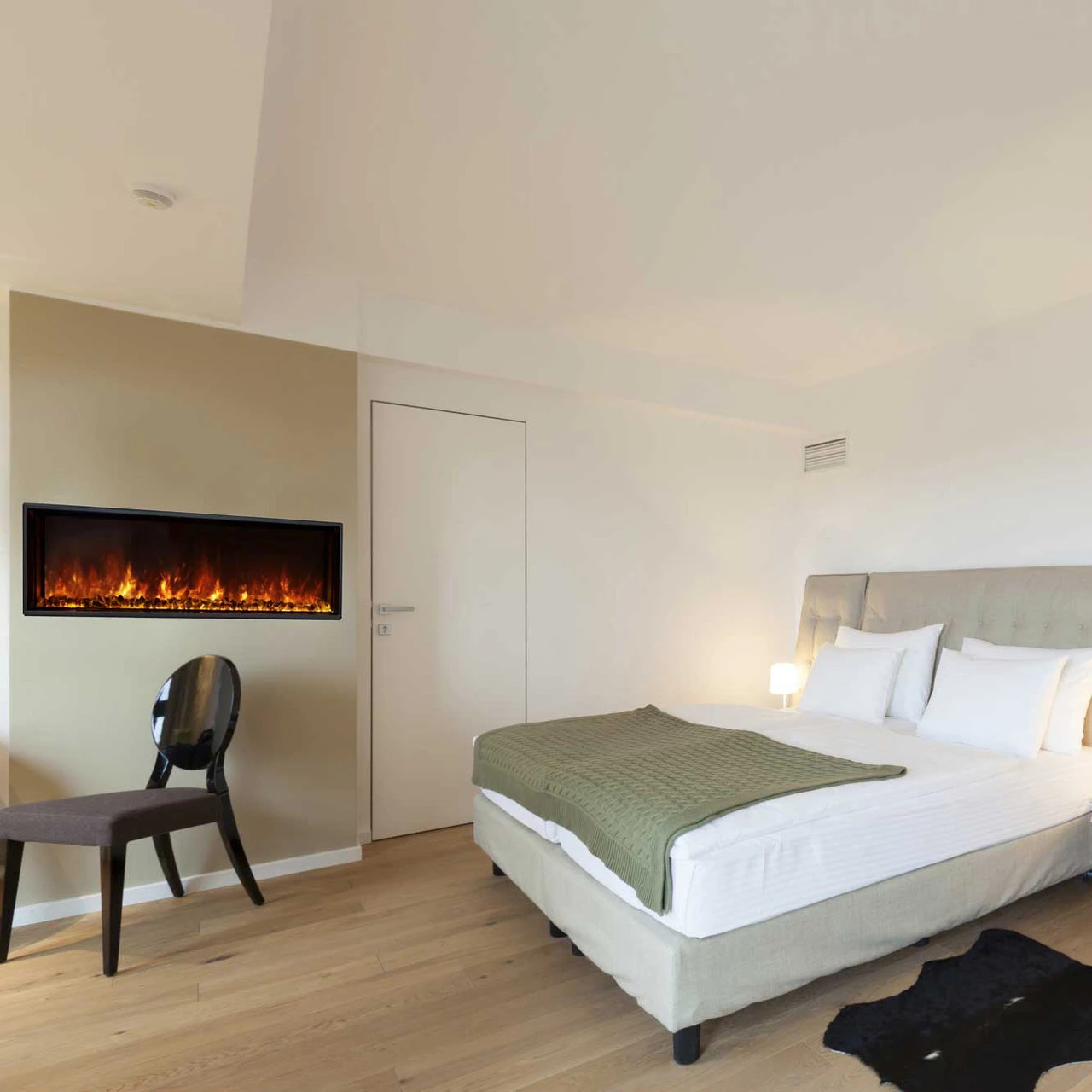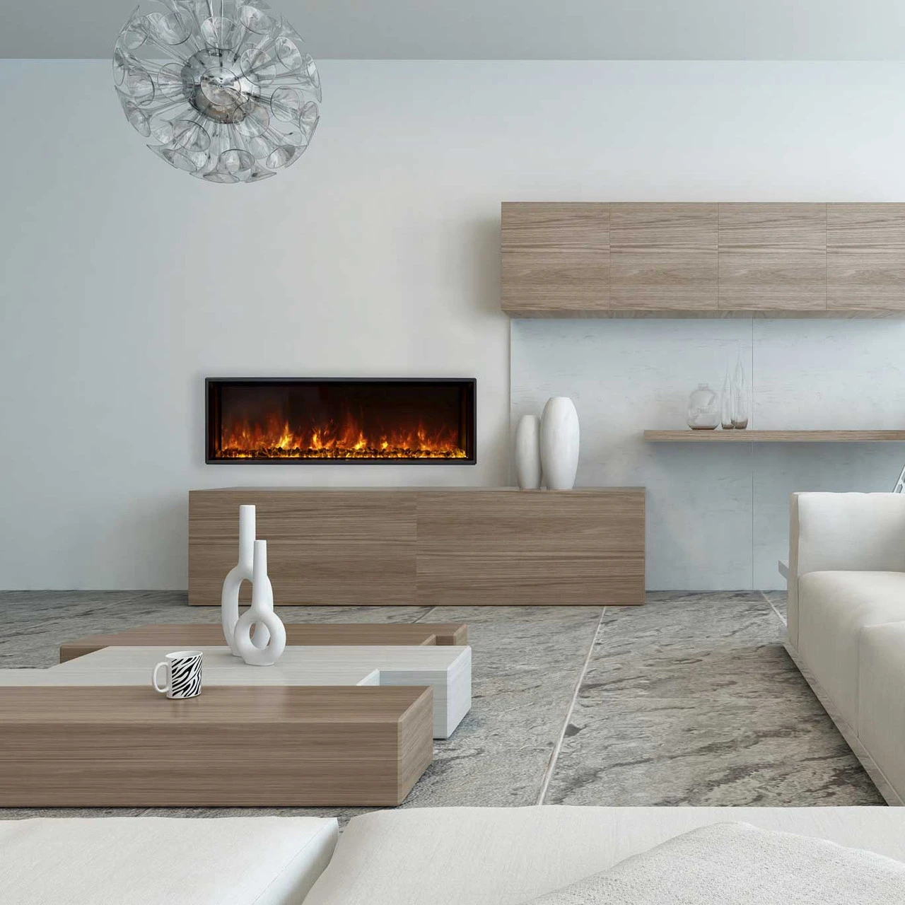 The first of its kind creating a perfect substitute for a linear gas fireplace. This unique frameless design allows for edge to edge flame presentation as well as unlimited surround capabilities. Available in 2 customizable flame bed options for different fit and finishes.