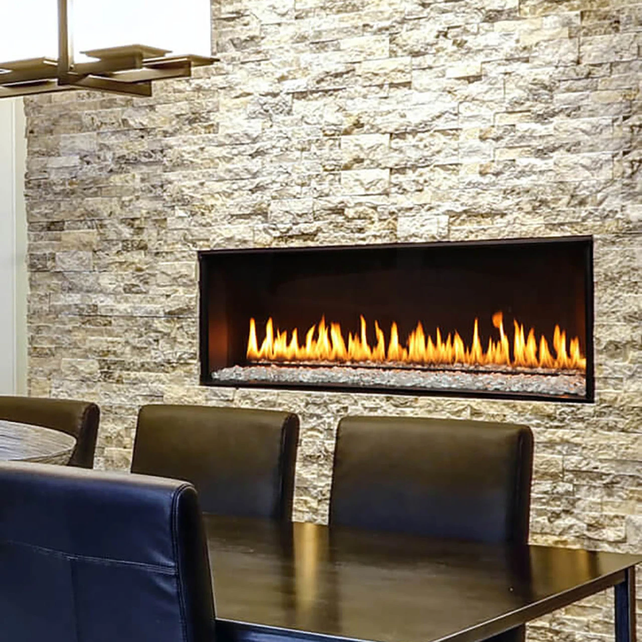 The EXEMPLAR is a power vent dedicated luxury fireplace characterized by a generous landscape viewing area and linear burner. Rock or tile can be installed over the firebox frame for a clean minimalist look.