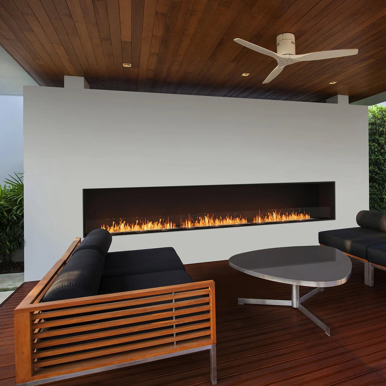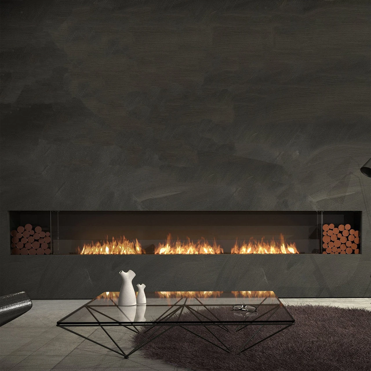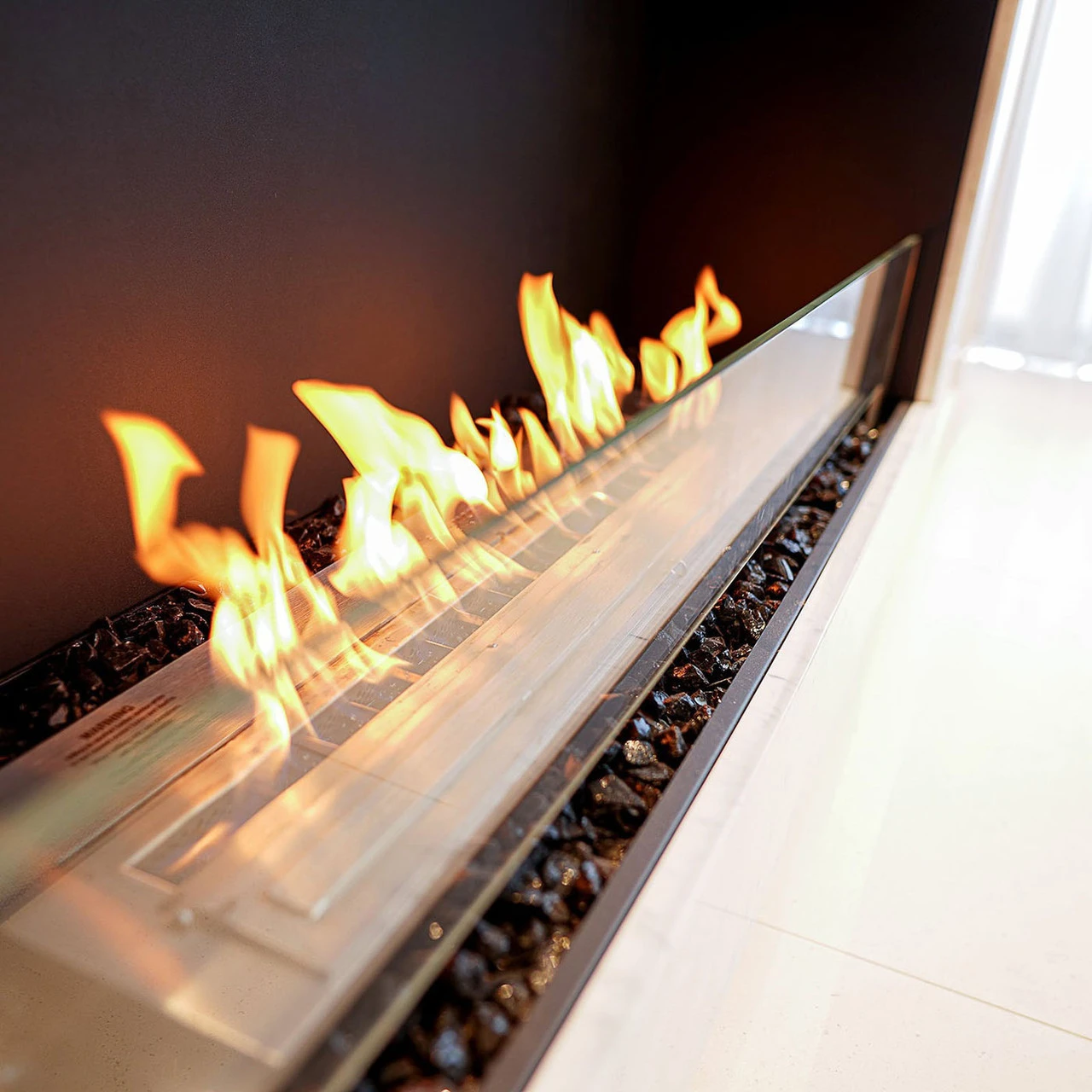 This Flex sports a single sided profile with a UL Listed stainless steel burner at its center. Utilizing e-NRG Bioethanol Fuel (sold separately), friends and family can relish a relaxing space without the fuss of smoke or ash. It comes with black glass charcoal that’ll add a stylish element to your focal point, as well as a toughened glass windscreen that protects the flames from windy conditions. The zinc sealed steel construction is powder coated with a black finish to prevent rusting and features a zero-clearance design for flexibile installation. Adding an optional decorative box–or two–installs a glass separator that creates a cubby space for decorating with non-combustible logs, stones, or other fire media (sold separately).