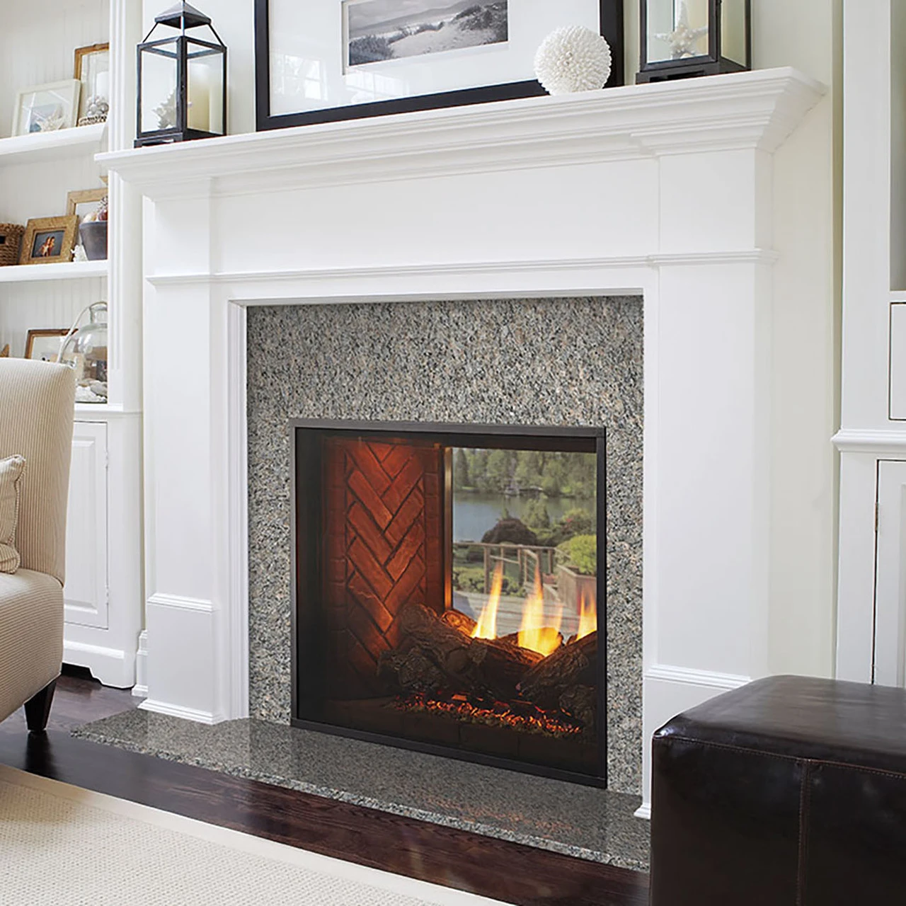 Seamlessly integrate your indoor and outdoor space with the Fortress see-through gas fireplace. The traditional style, expansive viewing area and authentic look fit perfectly in a variety of spaces. Non-reflective glass, accent lights and multiple interior brick options make this unique fireplace the ultimate in traditional luxury design. Enjoy the view both inside and out with the Fortress.