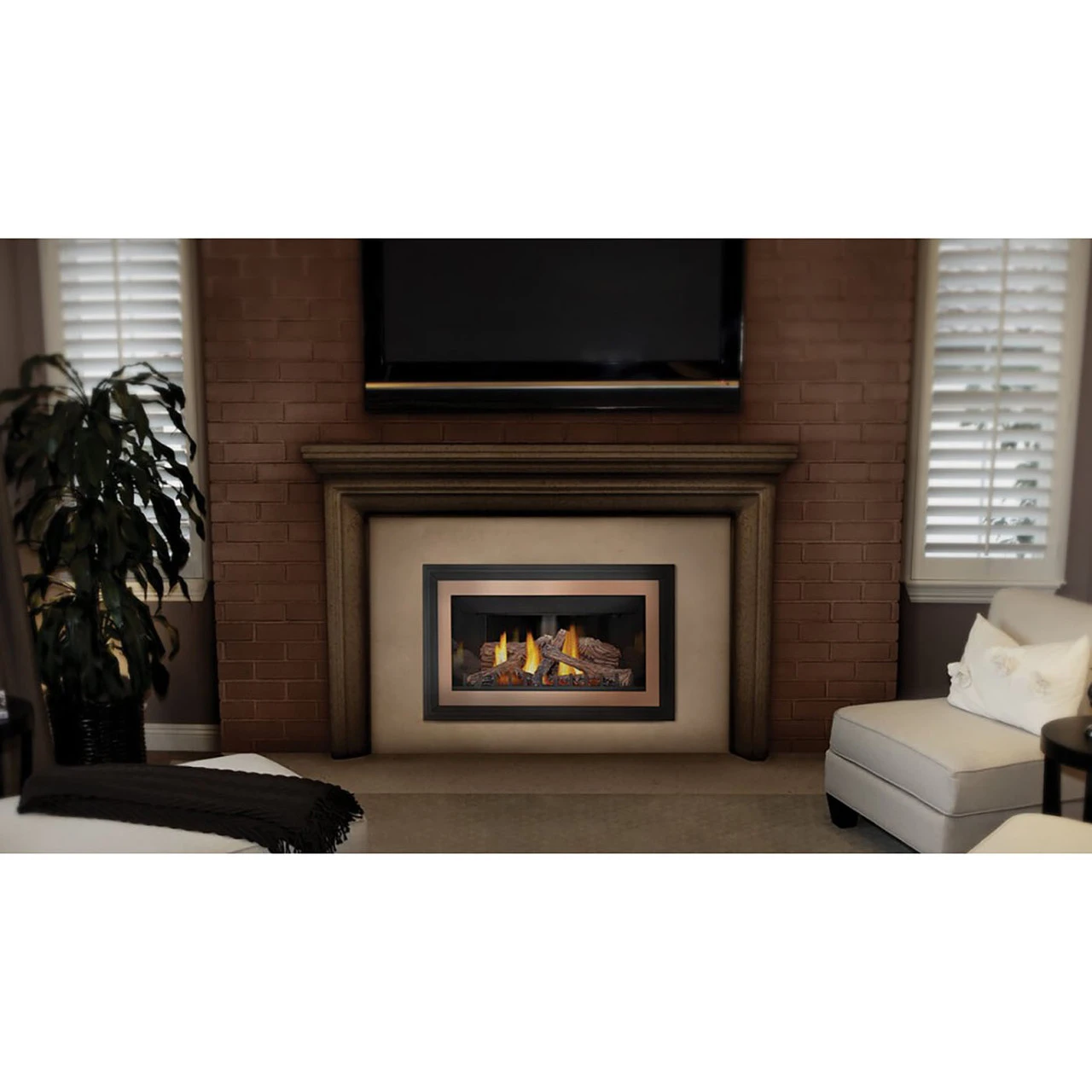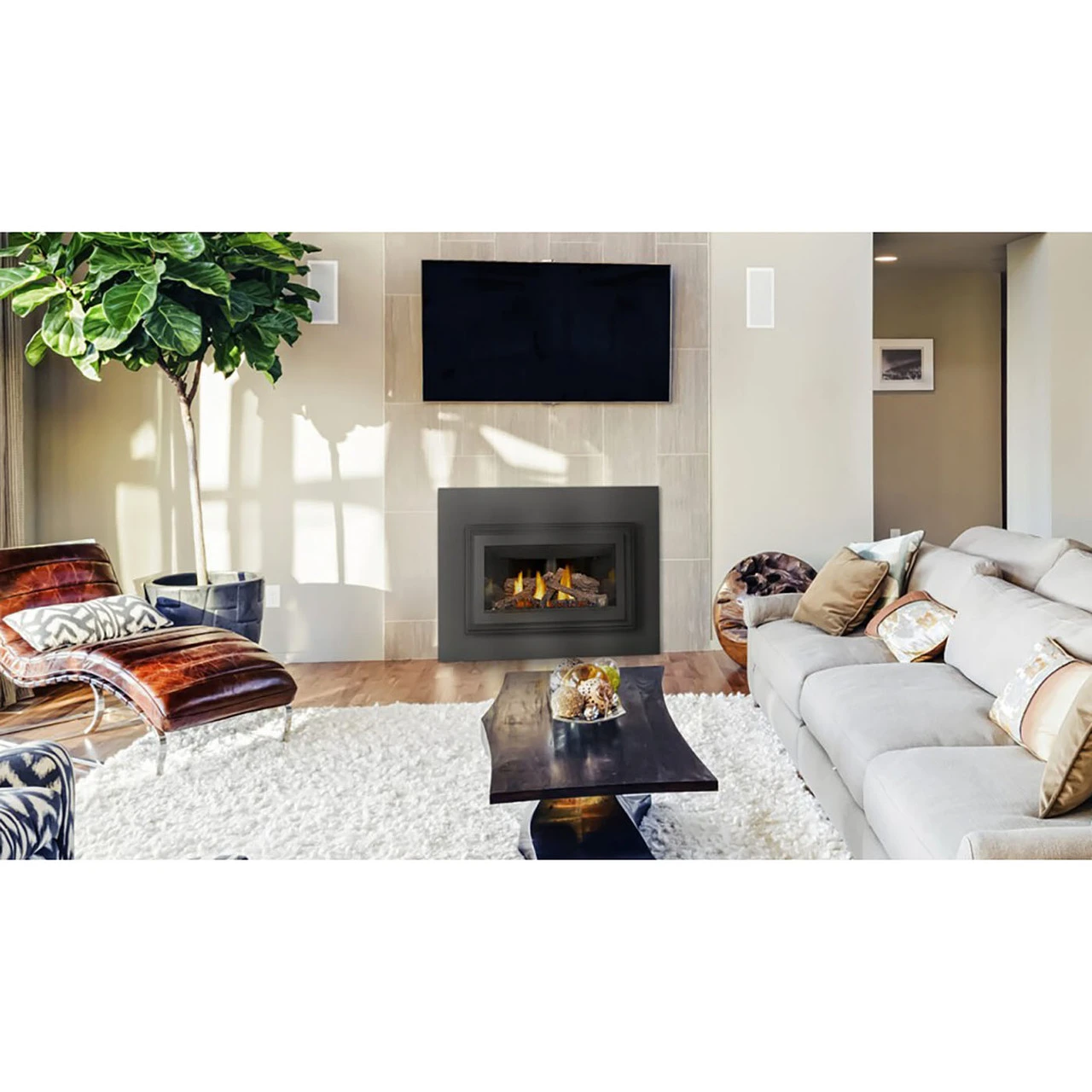 The Napoleon Inspiration™ ZC Gas Fireplace Insert produces beautiful, realistic YELLOW DANCING FLAMES® and the exclusive PHAZER® log set and charcoal ember bed are so realistic, they will be mistaken for a real wood fire. The blower comes standard with this unit to ensure efficient heating of any room. Designed to fit into the smallest insert openings, the Inspiration™ ZC features an impressive viewing area. A multitude of screens, fronts, trims, and surrounds ensure that this fireplace insert will meet your decor needs as well as creating a delightful and warm focal point. This Vesta award winning fireplace insert is the perfect gas fireplace insert for any room in your home.