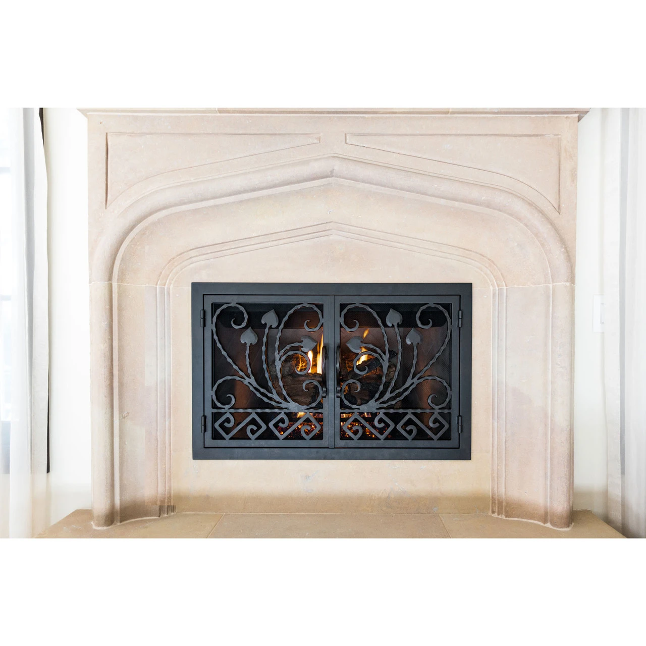 Each door is made just for you and can be made exactly to your liking! Our Montclair #13 fireplace door is made of industrial strength wrought iron which is extremely durable and can withstand extremely high temperatures making this door a perfect addition to your home and hearth. Wrought iron is also highly malleable which means we can easily transform and tweak any door design to your desired taste. Not only will you receive a long lasting fireplace door but you will receive a personalized door crafted just for you. Finish your fireplace doors with either a mesh screen or premium glass.