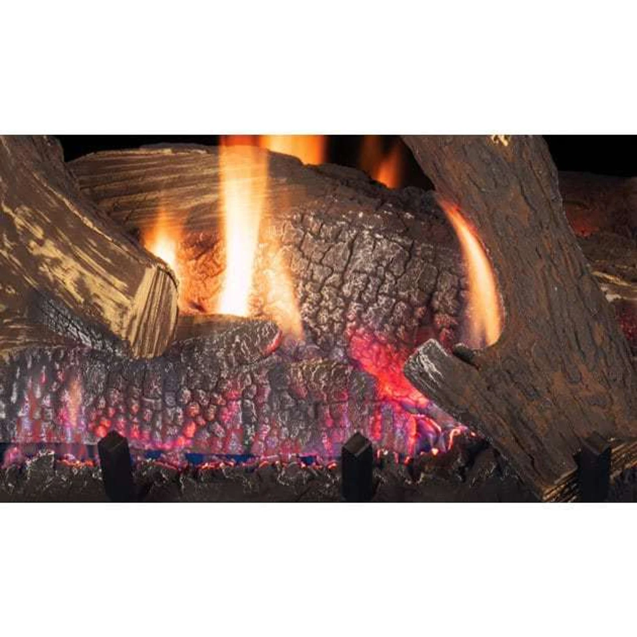 - The high-definition charred split-oak log set is cast from real wood for an authentic look.