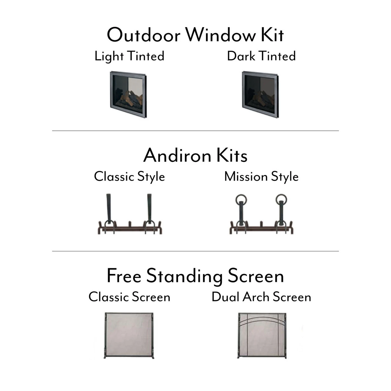 - Optional andirons evoke the look of a traditional hearth, in Mission and Classic styles.