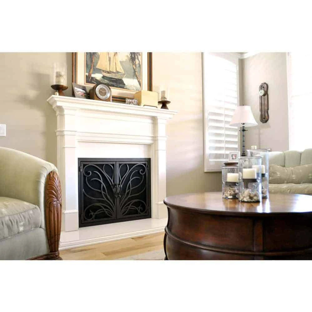 The vine-like design of our Napa door takes us straight into the vast grape fields of Napa Valley. Stunning curves bear a close resemblance of the way the grape vines grow on their arbors in the California sun. The open design of our Napa door allows you to enjoy your brilliant flames from anywhere in the room. Take a permanent “Stay-cation” with your brand new fireplace doors. Industrial strength wrought iron doors are extremely durable and can withstand extremely high temperatures making this door a perfect addition to your home and hearth. Wrought iron is also highly malleable which means we can easily transform and tweak any door design to your desired taste. Not only will you receive a long lasting fireplace door but you will receive a personalized door crafted just for you. Finish your fireplace doors with either a mesh screen or premium glass.