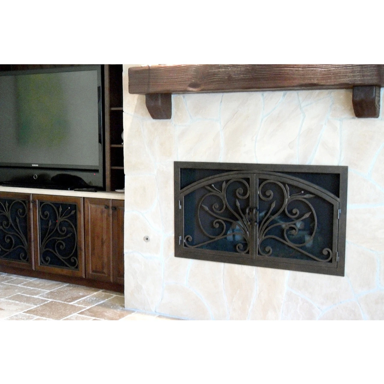 Our number 4 door was designed and named after one of natures most distinct flowers, the Orchid. The organic lines are reminiscent of the circular nature of the Orchid. Each isolated line with the soft arrows reminds us of the vine like features and flower bulbs of this precious flower. Each fireplace door is hand-crafted so no two doors are exactly alike which follows the same principle of nature. It’s organic design is sure to last a lifetime. Finish your fireplace doors with either a mesh screen or premium glass.