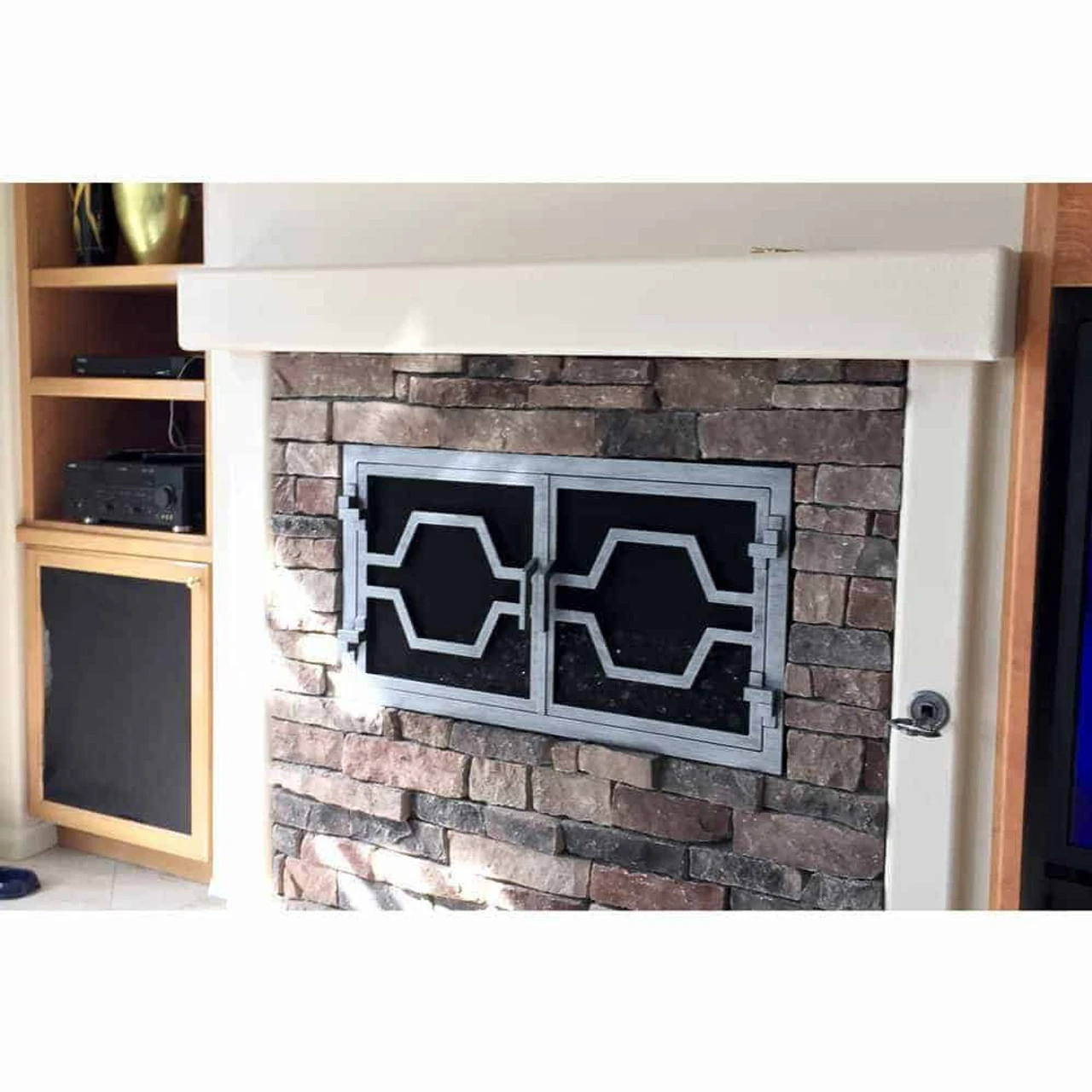 Industrial strength wrought iron doors are extremely durable and can withstand extremely high temperatures making this door a perfect addition to your home and hearth. Wrought iron is also highly malleable which means we can easily transform and tweak any door design to your desired taste. Not only will you receive a long lasting fireplace door but you will receive a personalized door crafted just for you. Finish your fireplace doors with either a mesh screen or premium glass.