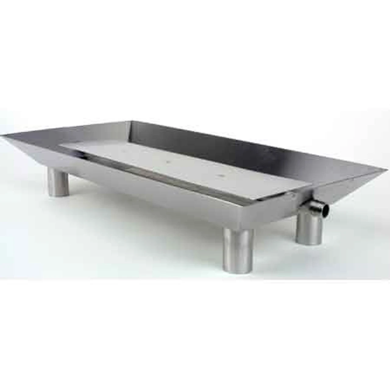“CS” Burner – Rectangular-shaped full-pan burner. Single pipe with baffle to distribute gas. Logs, FireBalls, etc. sit in the pan – no grate is used. 4.25” high with the legs, 2” high without the legs. Use in Single, Double and Multi-sided fireplaces.