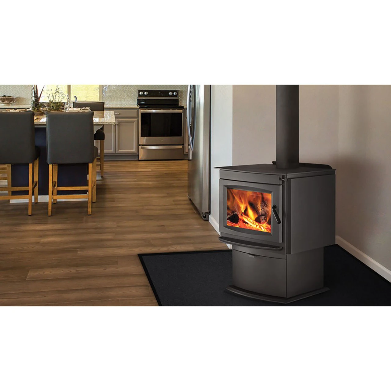 The Napoleon S20 Wood Burning Stove is clean and contemporary looking and features EPA 2020 certified wood-burning technology. Extremely long burn times ensure you can watch the fire for pleasure instead of babysitting the fire for reloading. A heavy-duty firebox top and full-width ash lip to protect your floor from debris, while a large ash pan (optional) with easy glide rollers ensures clean up is effortless. Clean and contemporary lines allow this wood burning stove to blend into your current décor while remaining highly efficient.