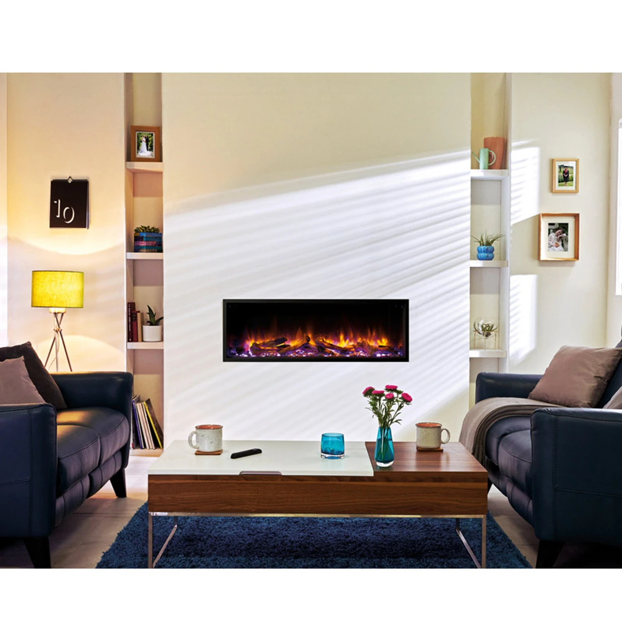 - Fully recessed, without unsightly trims, for the most realistic & contemporary electric fireplace on the market