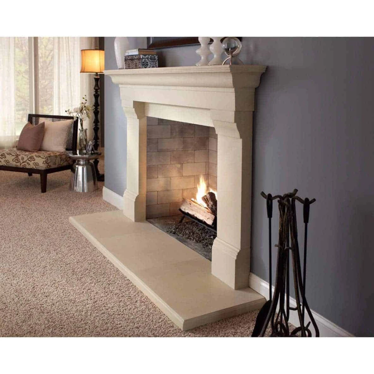 Surrounds are available in four colors designed to represent various types of natural limestone. Choose from Honed, a smooth surface or Travertine, a more textured surface. Both include color and texture variations, providing the authentic character and attributes of natural stone. Antique Castello is a distinctive color and finish for a more distressed and aged appearance often found in classical architecture.