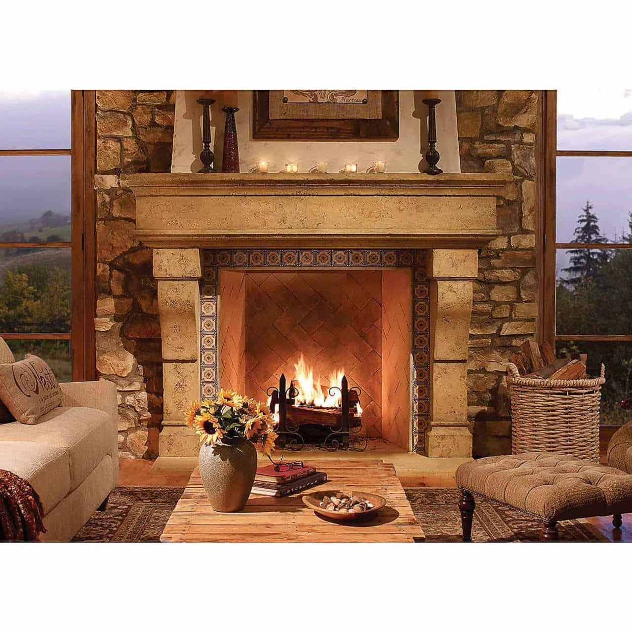 Surrounds are available in four colors designed to represent various types of natural limestone. Choose from Honed, a smooth surface or Travertine, a more textured surface. Both include color and texture variations, providing the authentic character and attributes of natural stone. Antique Castello is a distinctive color and finish for a more distressed and aged appearance often found in classical architecture.