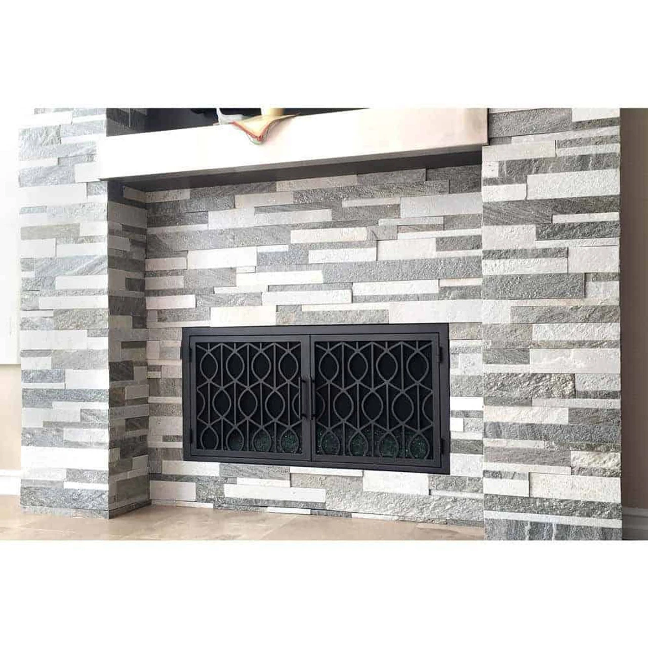 Each door is made just for you and can be made exactly to your liking! Favoring the look and feel of the vast ocean, our Wave door design was hand crafted to resemble the soft draw of the calming ocean waves. Enjoy the visual of elegant, therapeutic curves accompanied by your majestic fireplace flames. Industrial strength wrought iron doors are extremely durable and can withstand extremely high temperatures making this door a perfect addition to your home and hearth. Wrought iron is also highly malleable which means we can easily transform and tweak any door design to your desired taste. Not only will you receive a long lasting fireplace door but you will receive a personalized door crafted just for you. Finish your fireplace doors with either a mesh screen or premium glass.